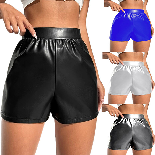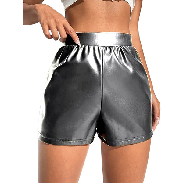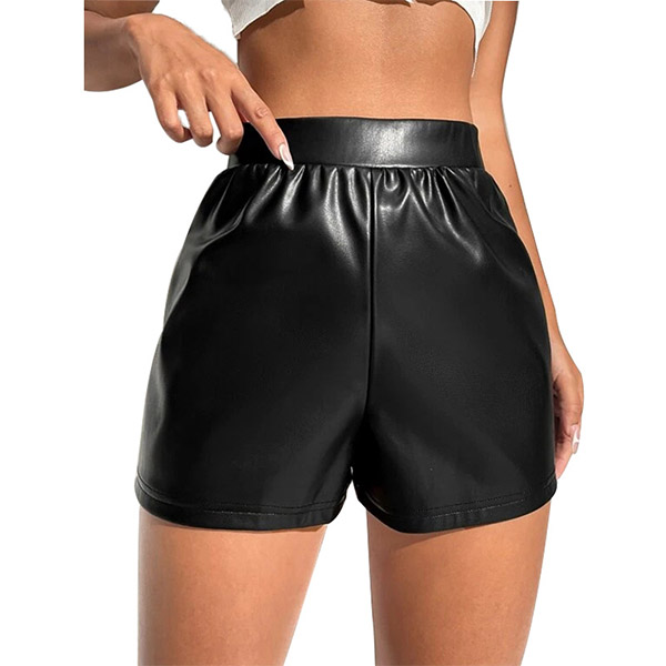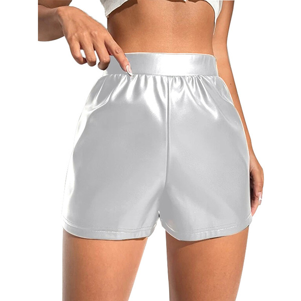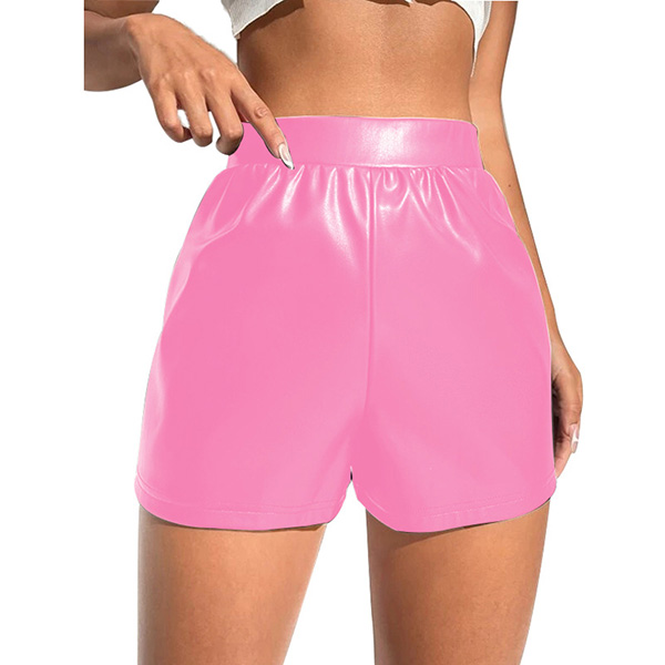 Fashion Solid Color High-rise Artificial Leather PU Shorts