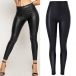 Fashion Solid Color High-rise Artificial Leather PU Slim Fit Pants