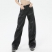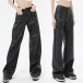 Fashion Solid Color High-rise Black Artificial Leather PU Pants