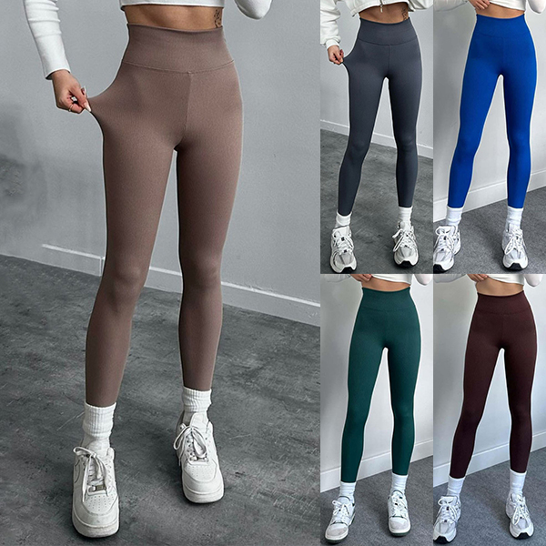 Fashion Solid Color High-rise Elastic Skinny Leggings for Workout