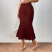 Fashion Solid Color High-rise Fishtail Hemline Skinny Skirt