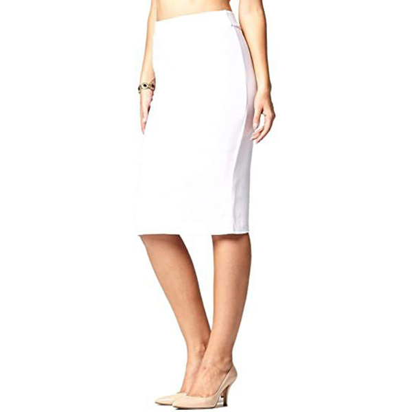 This skirt features a solid color design and a high-rise waist for a fashionable and sophisticated look.