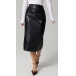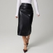 This black skirt features a high-rise silhouette with ruched detailing, a back slit, and artificial leather material for a bold and fashion-forward look. Whether you pair it with a blouse and heels for a night out or with a T-shirt and sneakers for a casual look, this skirt is sure to elevate your style and keep you looking chic.