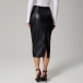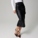 Fashion Solid Color High-rise Ruched Back Slit Artificial Leather PU Skirt