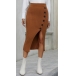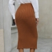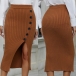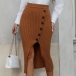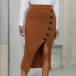 Fashion Solid Color High-rise Side Button Slit Ribbed Skirt