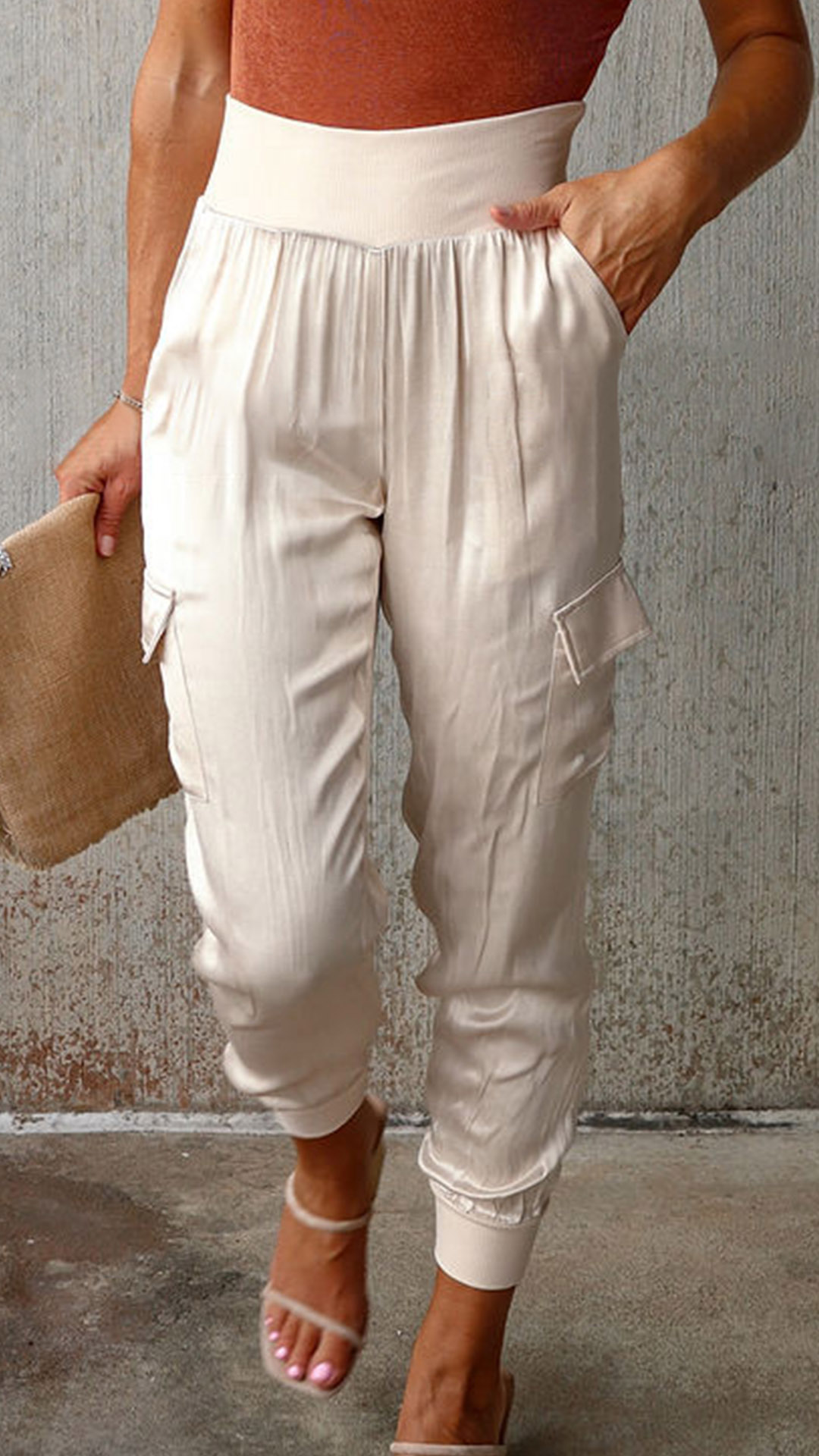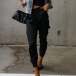 Fashion Solid Color High-rise Side Patch Pockets Pants