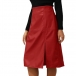 Fashion Solid Color High-rise Slit Artificial Leather PU Pencil Skirt