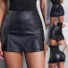 Fashion Solid Color High-rise Slit Artificial Leather PU Skorts