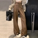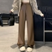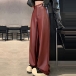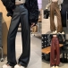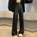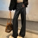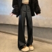 Fashion Solid Color High-rise Straight-cut Artificial Leather PU Pants