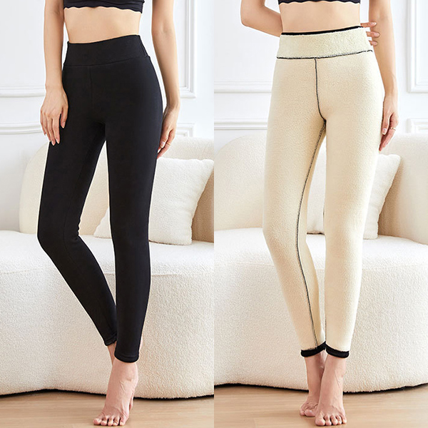 Fashion Solid Color High-rise Warm Plush Lined Leggings