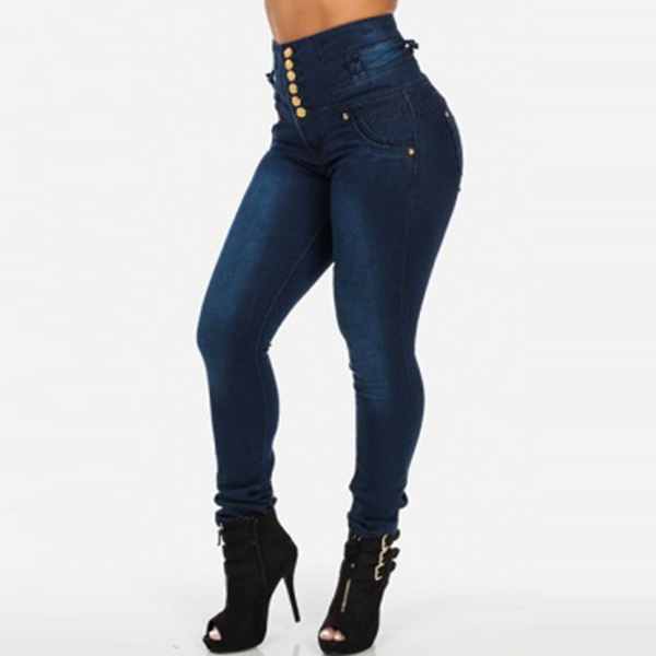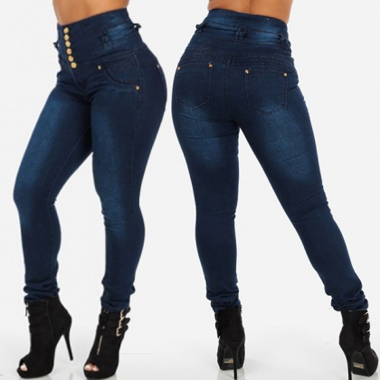 A pair of skinny jeans will tell you what fashion is in the next. The high waist buttoned design makes your waist look more slim