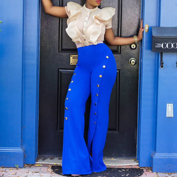It is difficult not to be the focus when you wear this flared pants. Solid color style,its high waist and flared silhouette
