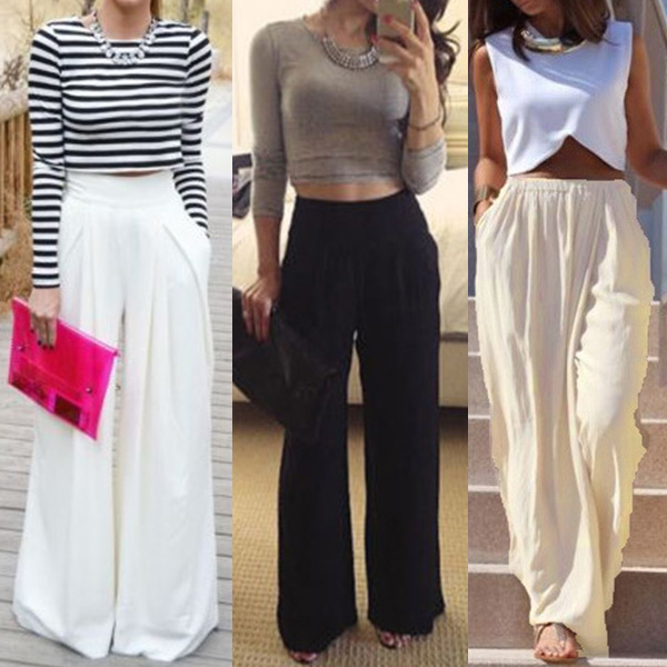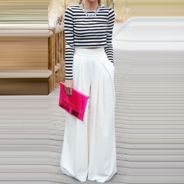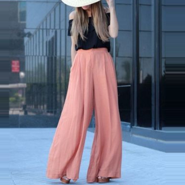 Nowadays,wide-leg pants has become a new fashion trend. So ride this trend with this chiffon wide-leg pants.