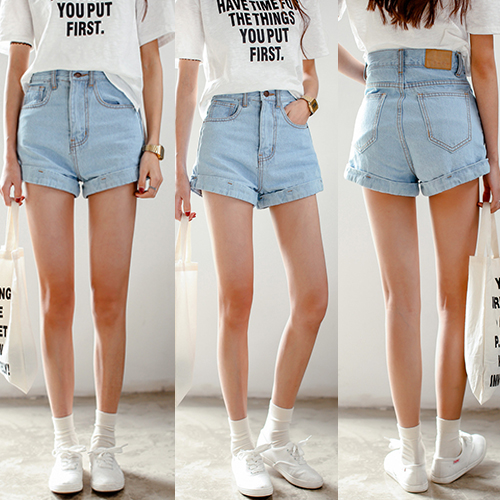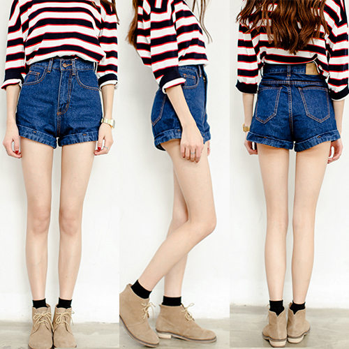 With high waist and solid color design, this denim shorts look so concise and fashion. And you can pair it with your