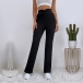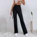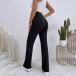 Except for the jeans,shorts and skirts,this flared pants can be your another good choice. Solid color tone design makes it look simple yet generous,while the high waist,flared silhouette design can showcase your slender legs. You can match with a crop top to achieve for a sassy and flirty look.