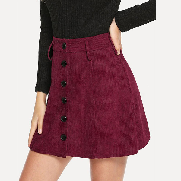 Such a stylish and all-match skirt is yearning for a place in your wardrobe. It boasts a solid color,finished with high waist,front-button and an A-line silhouette,this skirt is a good way to showcase your slender figure. All-match design allows to be matched with different style tops.