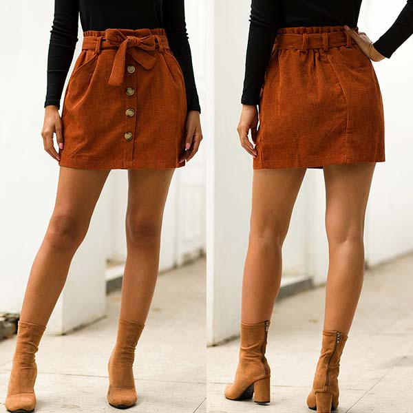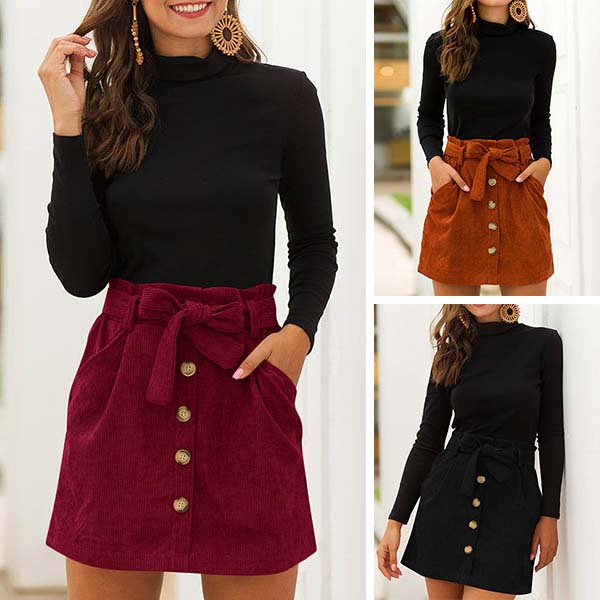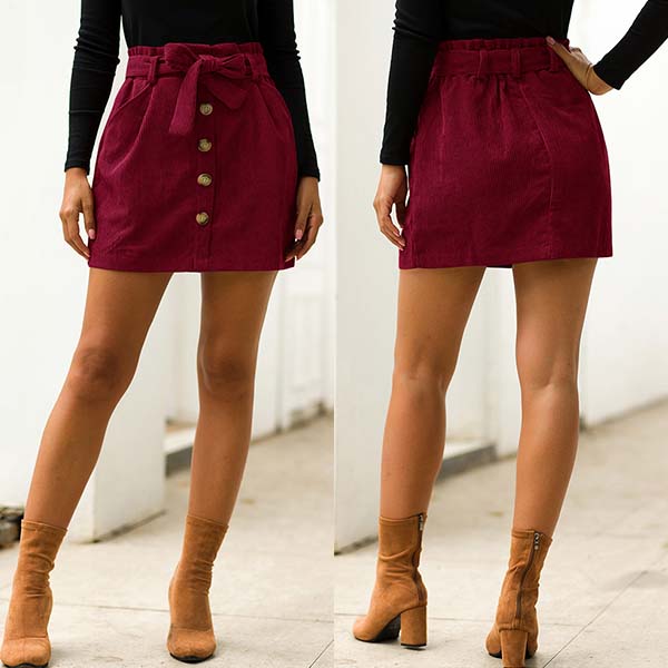Like this pieces which can offer you more matching opportunities? Then this skirt can easily strike your mind. The high waist and fit silhouette design can showcase your slender figure,while the waist strap and front-button design will make this piece look more attractive. No matter what kind of tops you pair with,it can hardly go wrong!