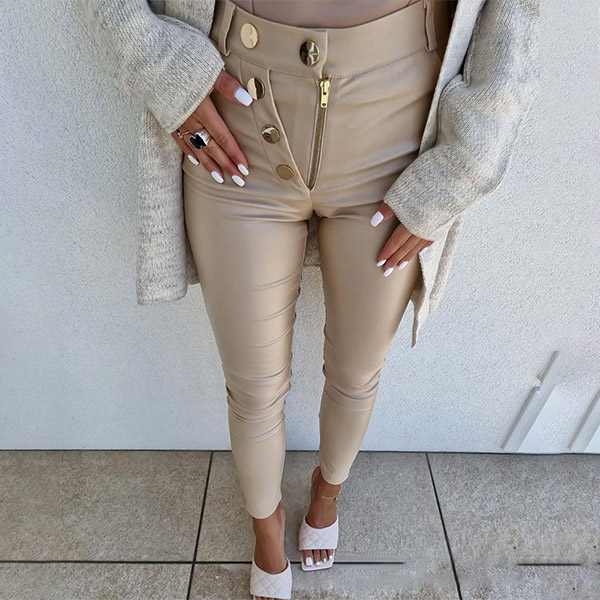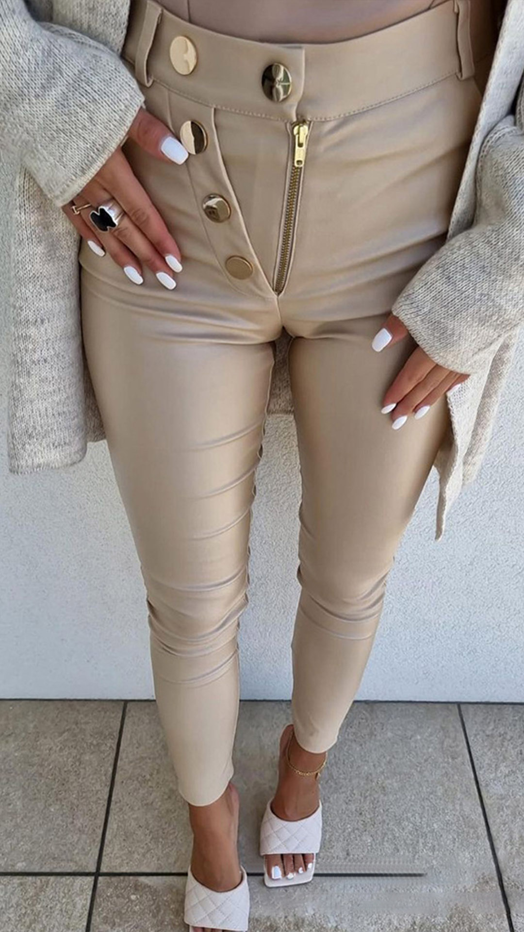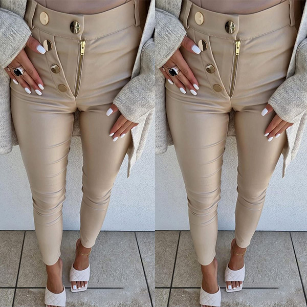 Fashion Solid Color High Waist Front-button Slim Fit Pants