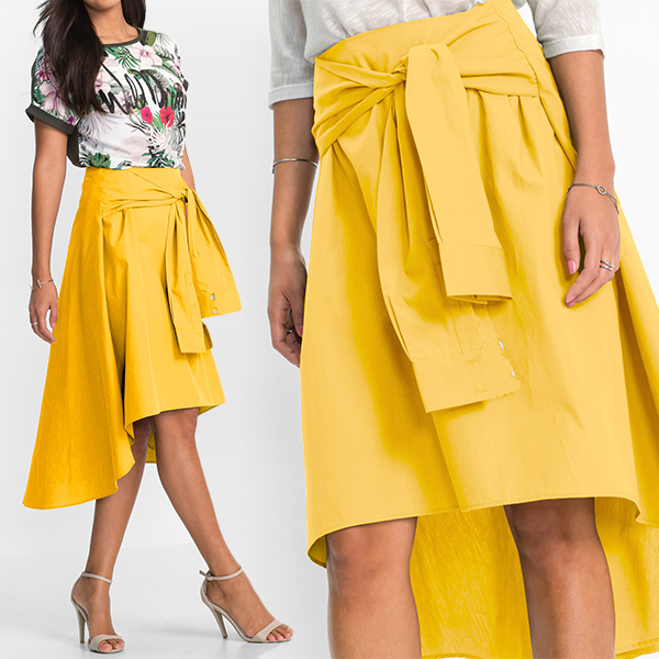with high waist and high-low hem design,stylish and edgy. What's more,the unique design at waist part makes this