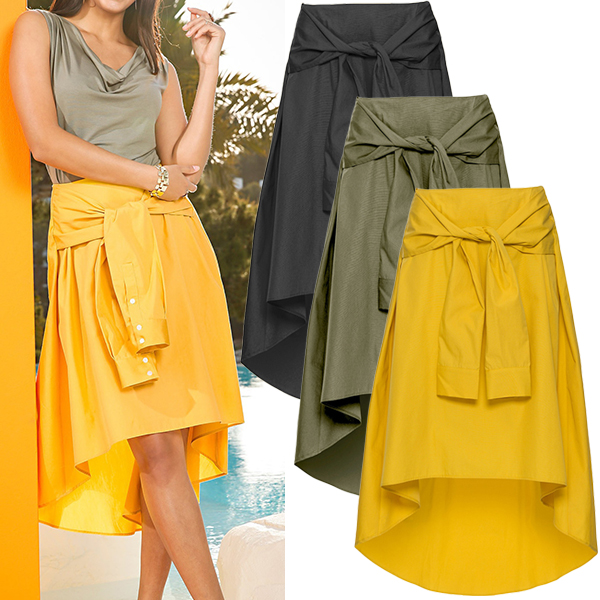 Fashion Solid Color High Waist High-low Hem Skirt