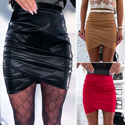 It is a good chance to exude your charming feminine appeal through this PU leather skirt. Solid color style,designed with high waist and an irregular hem,this piece is sure to showcase your slender and charming legs. All-match design allows to be matched with different style tops.