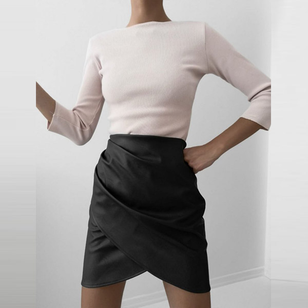 This stylish and all-match PU leather skirt is worth to arouse your attention. It comes with a flattering black tone,finished with high waist and an irregular hem design,this skirt can offer you different fashion styles by teaming with different style tops.