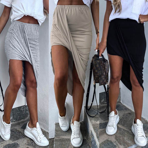 You can look lively and full of personality with the exceptional style of the skirt. Solid color style,the irregular hem design make this piece look so chic and distinctive. We suggest you matching with a crop top to achieve for a sexy and flirty look.