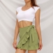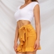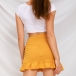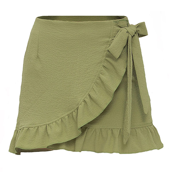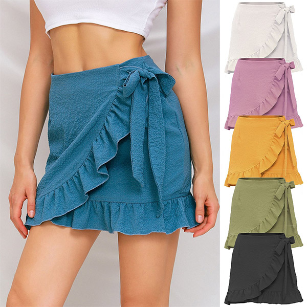 Only need one glance,you would be attracted by this chic and sweet skirt. Comes with a solid color,the irregular lace-up and ruffle design are the highlights,which can easily arouse more eyes. If you wanna look sexy and flirty,then you can consider adding a crop top or cami top.