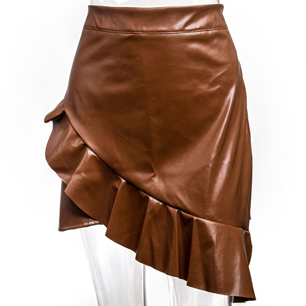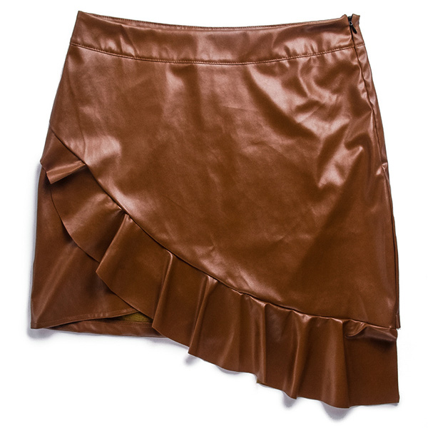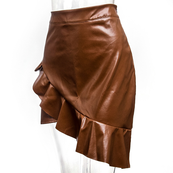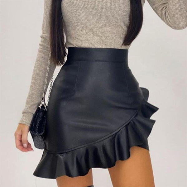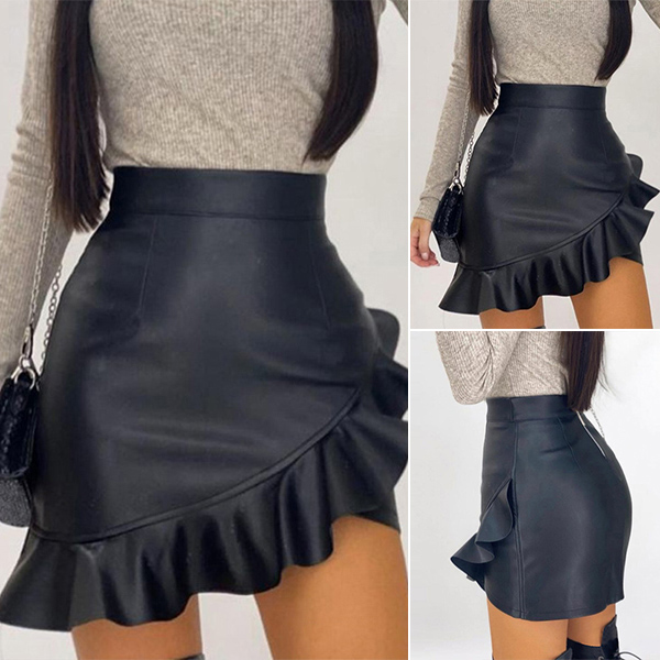 This PU leather skirt comes with a classic yet flattering black tone,finished with high waist and an irregular ruffle hem design,which can showcase your charming and slender legs. All-match design allows to be matched with different style tops.
