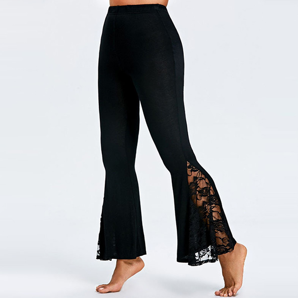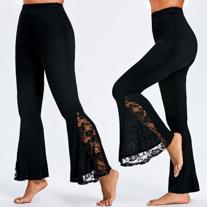 If you wanna update your pants ensemble,then this flared pants would be your wise choice. The flattering black tone and high waist design can better showcase your slender legs and figure. Moreover,the flared hem with lace spliced details will add some extra charm. When matching with a crop top,you can achieve for a flirty yet alluring daily look.