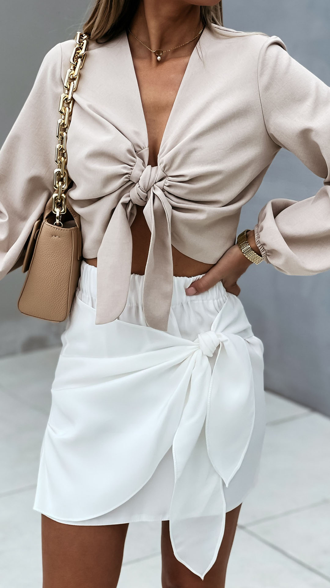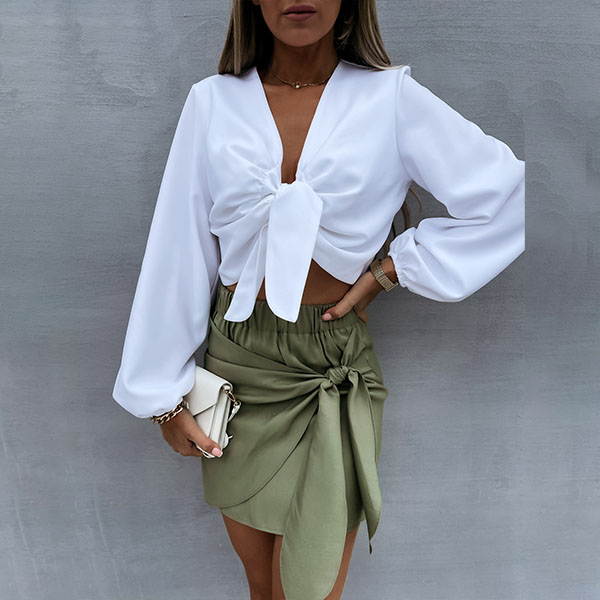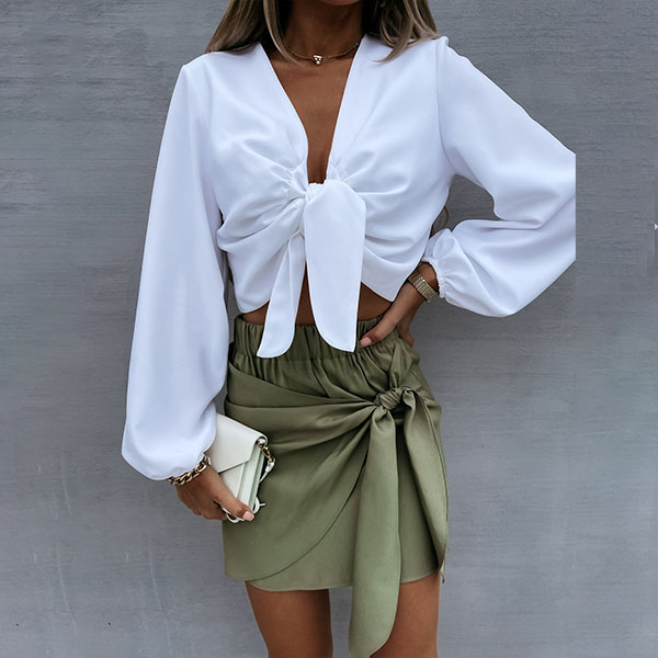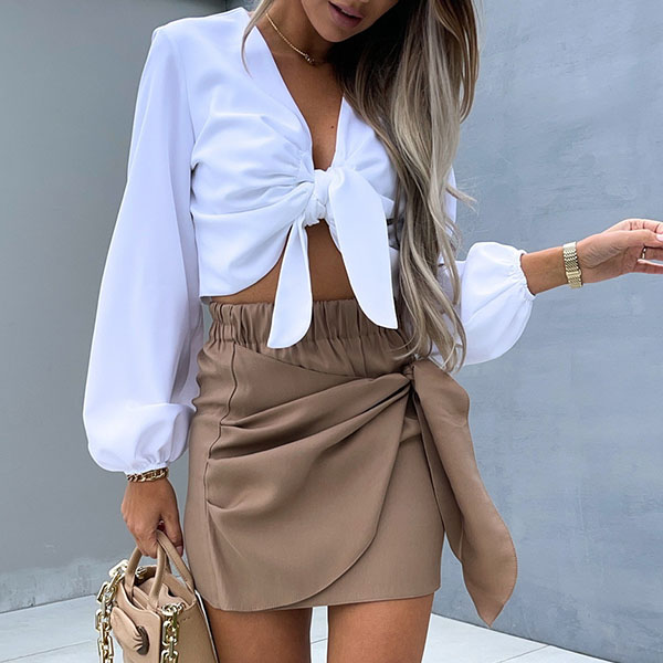 In these summer days,it is a good chance to flaunt off your charming and slender legs. So we suggest you choosing this skirt. It comes with a solid color,with high waist and lace-up design,which make this piece look so distinctive and attractive. You can match with a crop top if you wanna look sexy and flirty.