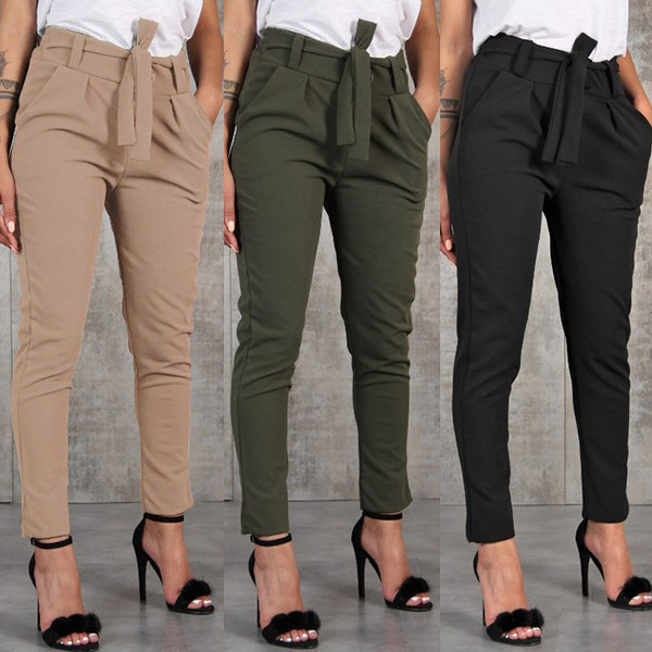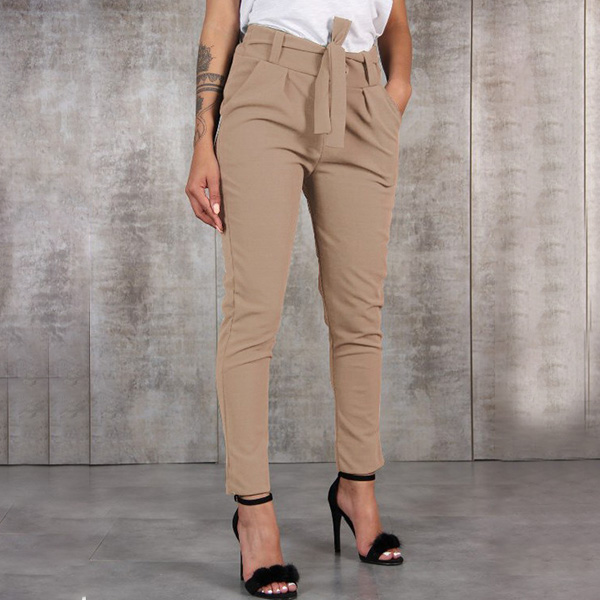 Thanks to the high waist and clean,fit silhouette design,your slender legs can have a full display in this pants. Comes with a waist strap design,which not only can enrich the design style,but also can enhance its entire charm. All-match design allows to be matched with different style tops.