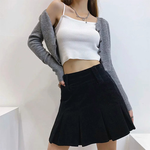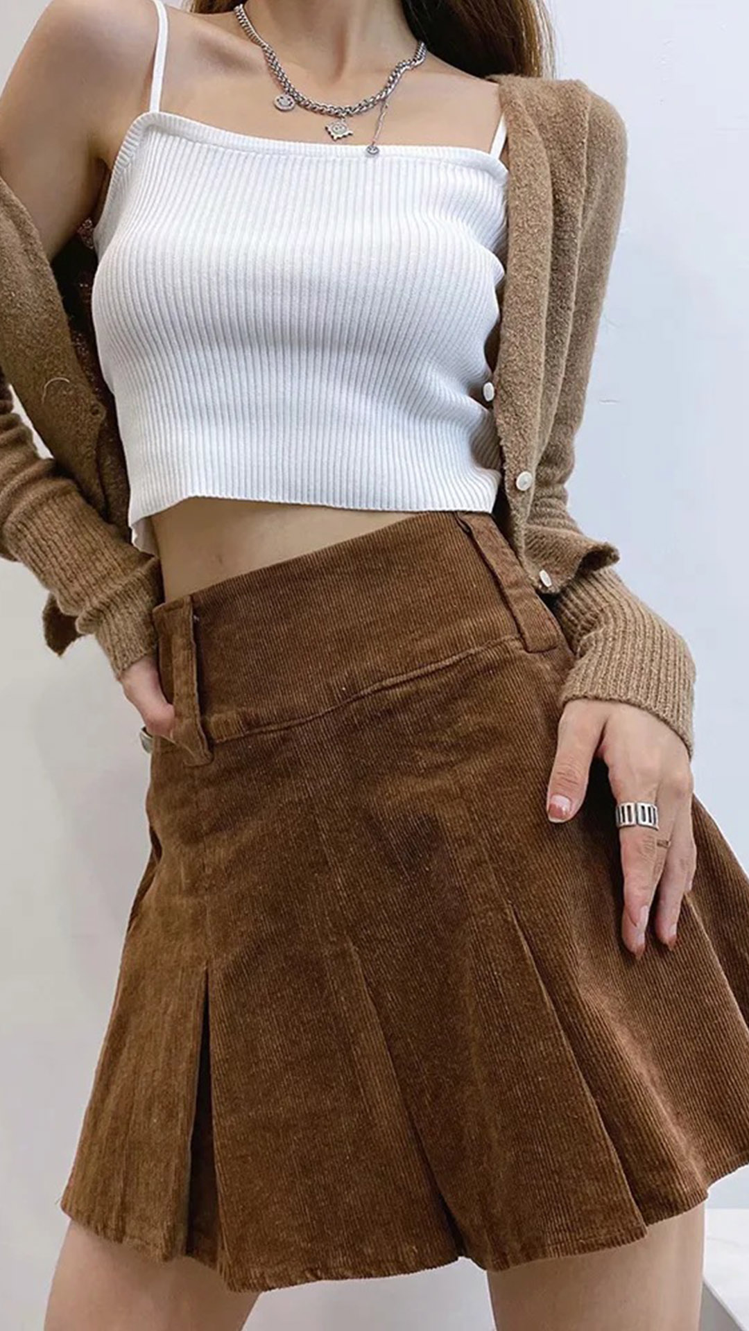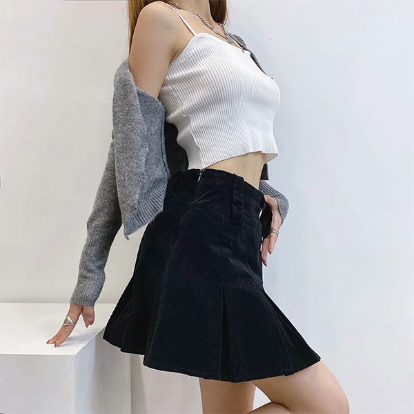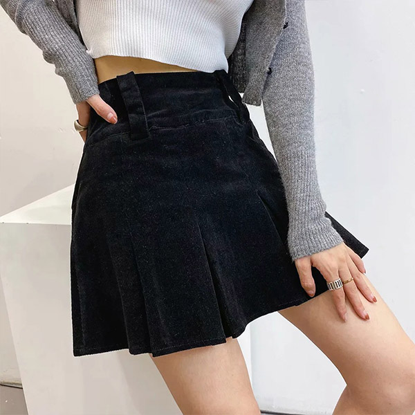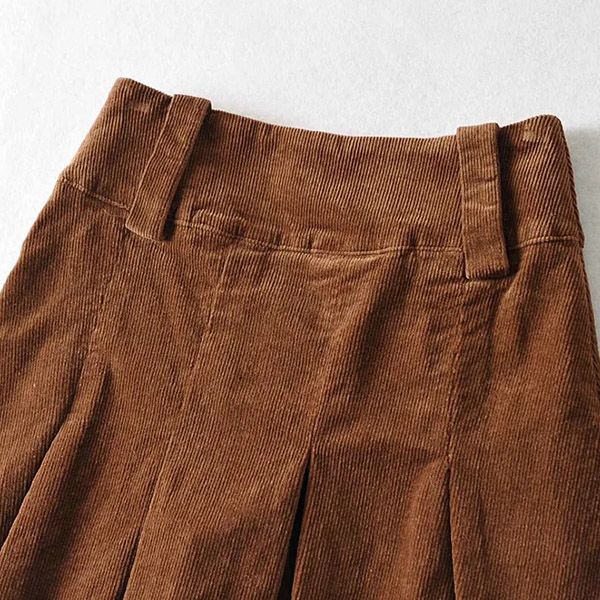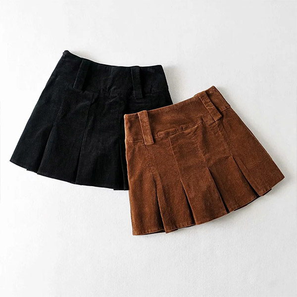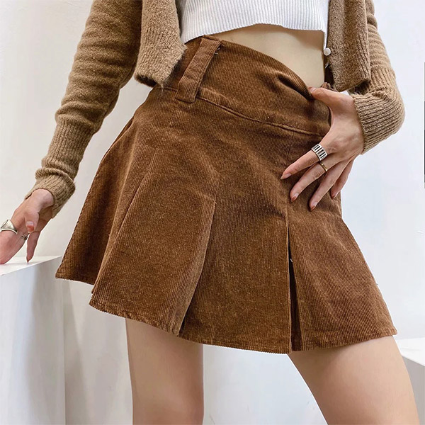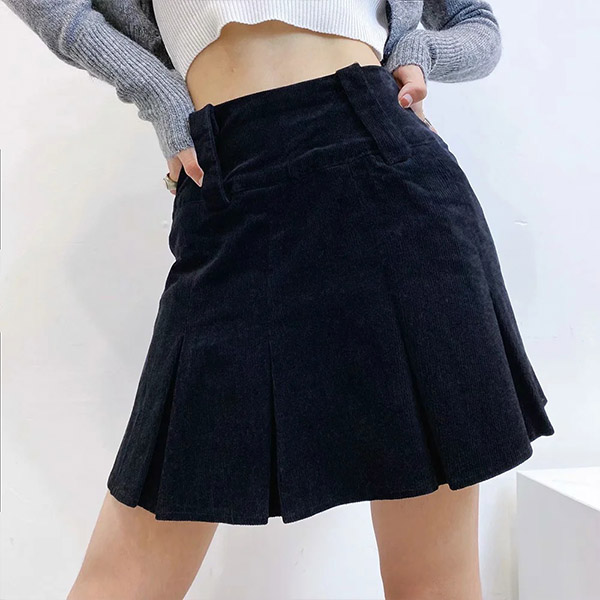 When you wanna flaunt off your charming and slender legs,the pleated skirt such as this creation can be your perfect choice. Solid color tone design makes it look simple yet generous. And the corduroy fabric can give you the comfortable wearing feeling. Perfect fit for matching with different style tops.