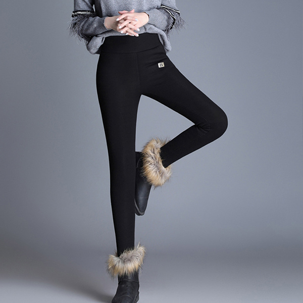 Fashion Solid Color High Waist Plush Lining Leggings