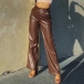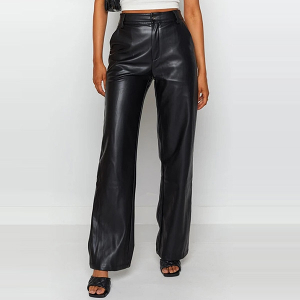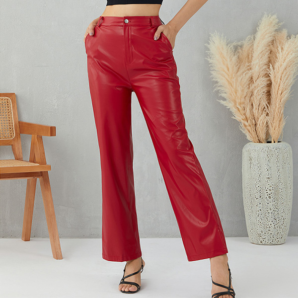 For every girl's wardrobe,a stylish and all-match pants is an essential,and this PU leather pants is a good example. It comes with a solid color,the high waist and clean silhouette design can showcase your slender figure. When match with a crop top or cami top,you can easily achieve for a sexy and flirty daily look.