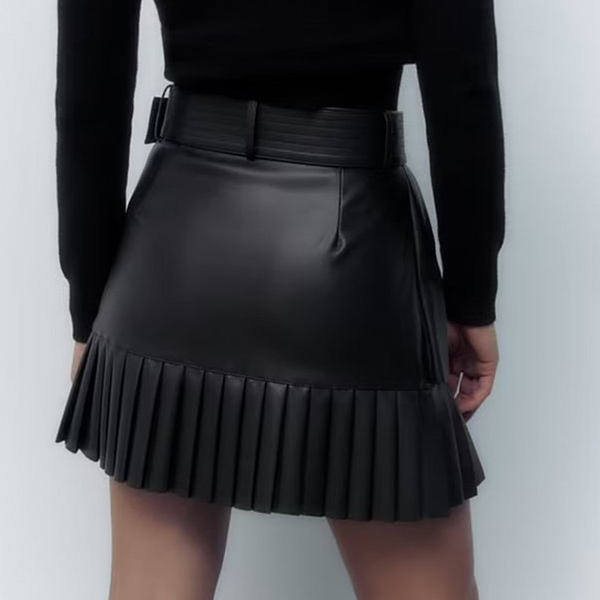 This PU leather skirt comes with a solid color,finished with high waist and pleated details,which can showcase your slender and charming legs. Comes with a waistband design,which can enrich the design style. All-match design allows to be matched with different style tops such as t-shirts,shirts and so on.