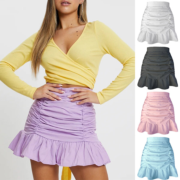 It is a good chance to flaunt off your charming and slender legs through a skirt such as this piece. It boasts a solid color,finished with high waist,ruffle hem and wrinkled details,this piece an offer you different fashion styles by teaming with different style tops.