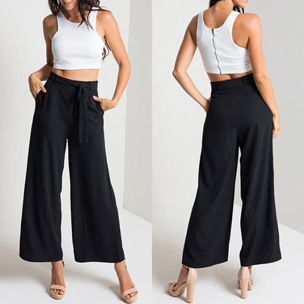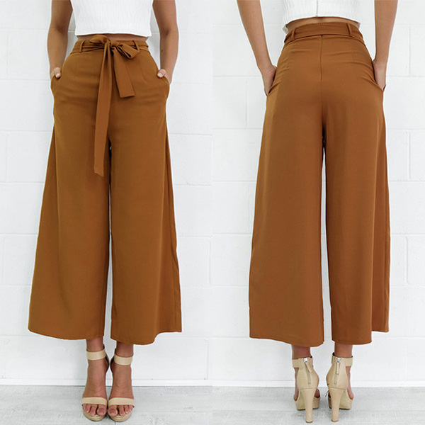 The high waist and self-tie waist belt can let your waist look slim. The ankle-length can bring youth dash to your outfits.