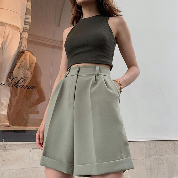 When the days get hot,this cozy yet stylish shorts can be your wise choice. Solid color tone design makes it look simple yet generous. Finished with high waist and a wide-leg silhouette,this shorts can showcase your slender figure. Perfect fit for matching with different style tops.