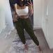 Fashion Solid Color High Waist Side-pocket Casual Pants