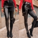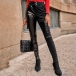 Fashion Solid Color High Waist Side-pocket Slim Fit PU Leather Pants
