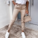 When you are tired of the skirts,jeans and dresses,then this pants can be your another good choice. Crafted in a solid color,with high waist and a clan,fit silhouette,this pants not only can give you an all-day comfort,but also can offer you different matching styles. Add this piece to your wardrobe and it won't let you disappointed!
