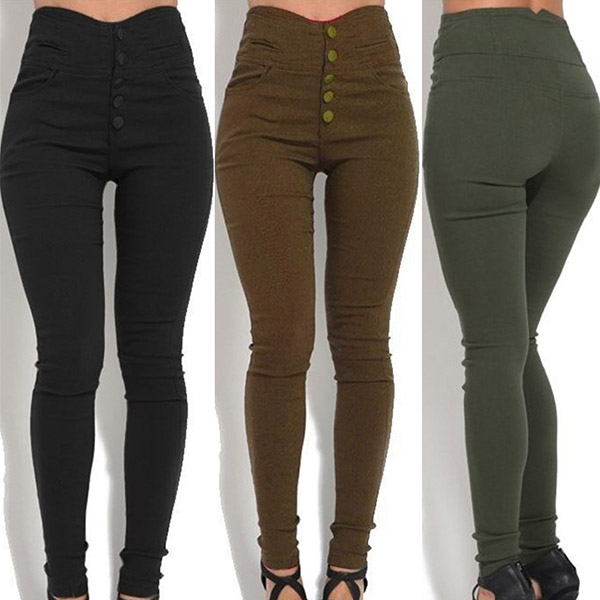 Fashion Solid Color High Waist Slim Fit Pants
