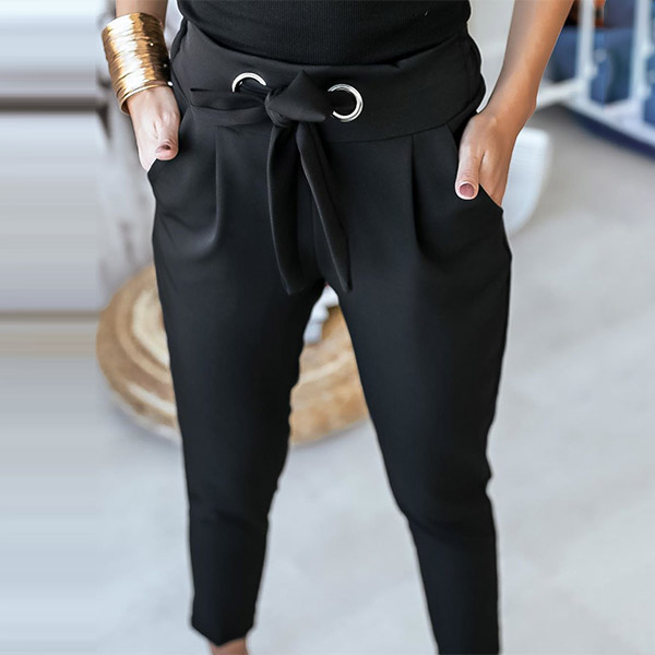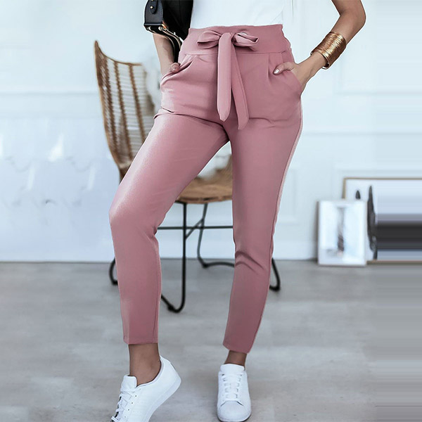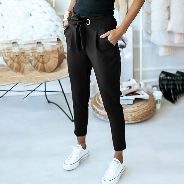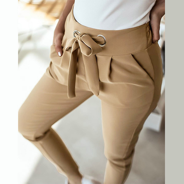 This pants that combines of simple,stylish and all-match vibes is worth to arouse your attention. Solid color style,the high waist and fit silhouette design can showcase your slender figure,while the waist strap design will boost its entire charm. You can match it with any kind tops you like to achieve for a delicate and fashionable daily look.