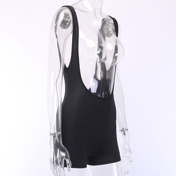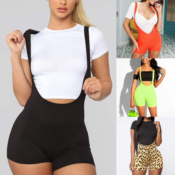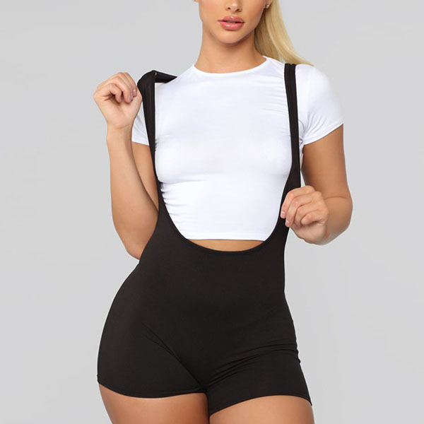 Fashion Solid Color High Waist Slim Fit Sling Shorts Overalls