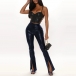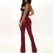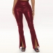 Fashion Solid Color High Waist Slit Fit Slim Hem PU Leather Flared Pants