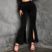 Wanna try a different style pants? Then you can just make your eyes focused on this pants. The high waist and flared hem design will showcase your slender legs and figure. What's more,the slit hem design will boost its entire charm. No matter what kind of top you pair with,it can hardly go wrong!