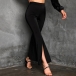 Fashion Solid Color High Waist Slit Hem Flared Hem Slim Fit Pants