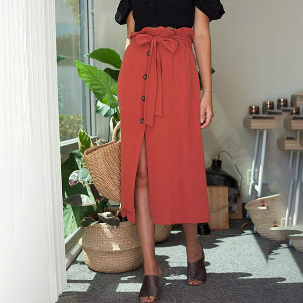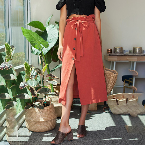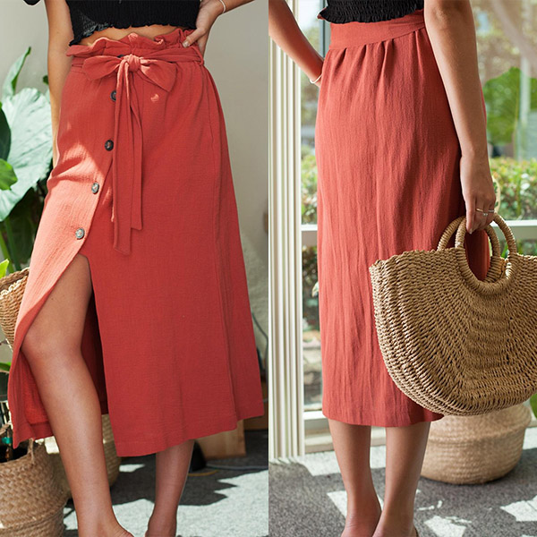 For every girl,a stylish and all-match skirt is a wardrobe essential. So what are you waiting for if you still not have one? This skirt comes with a solid color,the high waist and clean silhouette design can showcase your slender figure,while the slit hem and front-button details will make this piece look more stylish and attractive. Try to match with a crop top if you wanna look sexy and flirty.