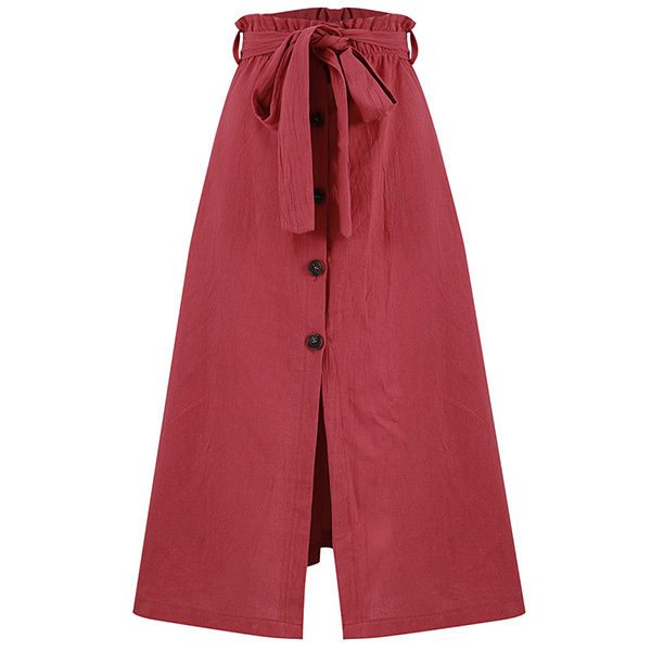 Fashion Solid Color High Waist Slit Hem Front-button Skirt